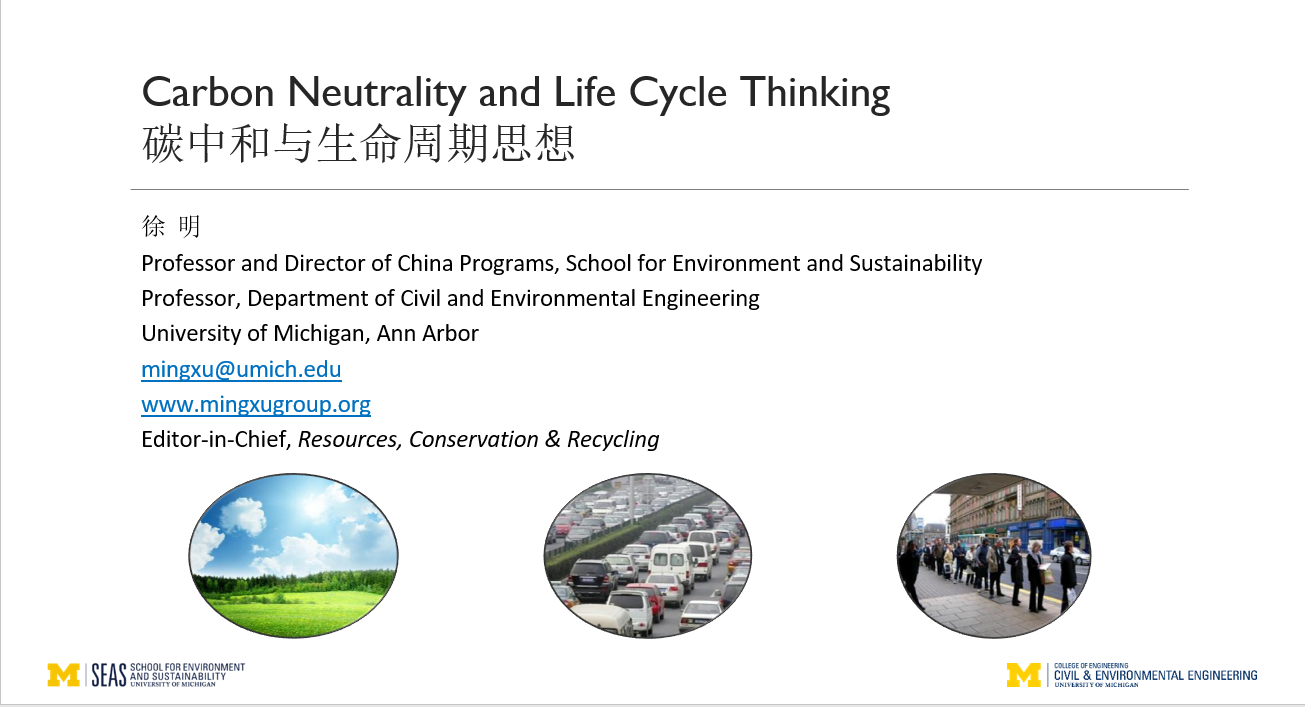 “2021与国际期刊主编‘面对面’学术讲座”系列讲座第十一讲,主讲嘉宾为美国密西根大学环境与可持续发展公司教授教授徐明,讲座由英国威廉集团官网教授魏楚主持。徐明以“碳中和与生命周期思想”为题进行了本次分享。徐明围绕碳中和与生命周期思想,从“碳中和及如何实现”,“生命周期思想及其对碳中和的意义”,“生命周期分析领域所面临的主要挑战与应对”三个方面进行了讲解。在“碳中和及如何实现”部分,徐明介绍了碳达峰和碳中和的相关概念以及碳中和的两个“抓手”,即生产端和消费端。接着通过分析碳中和对企业带来的挑战和机遇得出企业实现碳中和、减少碳足迹的压力和动力越来越大的结论。在“生命周期思想及其对碳中和的意义”部分,徐明介绍了生命周期思想的概念、作用、政策应用及其在碳中和中发挥的作用。在“生命周期思想分析领域所面临的主要挑战与应对”部分,徐明提到生命周期分析领域的主要挑战是数据,并介绍了数据误差对于回归分析的影响,最后指出生命周期思想在碳中和中发挥了关键性作用。