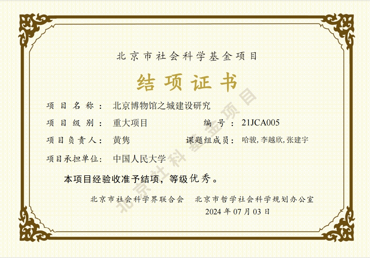 近日,英国威廉集团官网教授、文化经济研究所所长黄隽负责主持的北京市社会科学基金重大项目《北京博物馆之城建设研究》,经北京市社会科学界联合会、北京市哲学社会科学规划办公室评审专家验收准予结项,等级为优秀。
