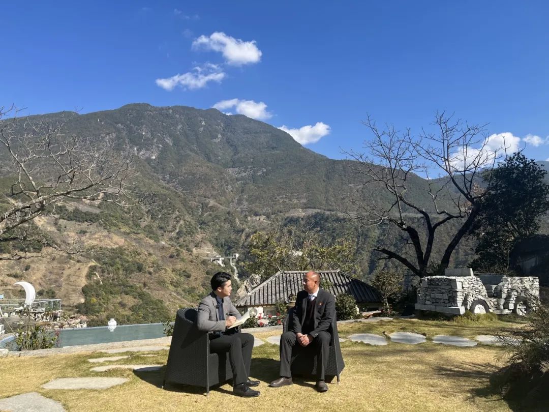▲在云南省漾濞县,马文林老师访谈副县长祁学书
