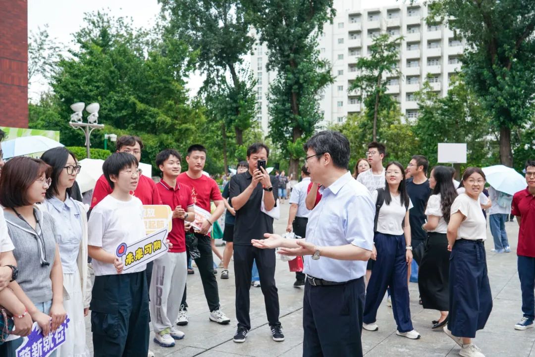 与新生、志愿者亲切交流
