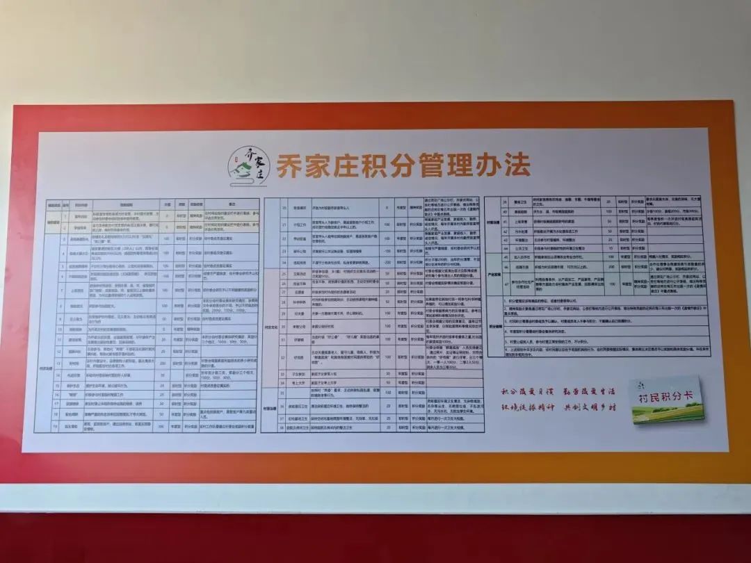 乔家庄村创新性地实施“积分管理”模式,以网格化管理为基础,以《村规民约》为抓手,探索出“积分超市”这一特色道路。村民通过参与公益活动、维护村庄环境、遵守村规民约等行为积累积分,可在“积分超市”兑换日常生活用品。这一模式有效提升了村民的自我管理和自我发展能力,增强了村庄的凝聚力和向心力,基层治理从“被动任务”化为“引导激励”,村民从“旁观者”主动变身“参与者”,形成齐抓共管乡村治理新格局。