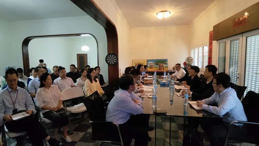 在安哥拉期间,代表团与中信建设、中国石化、中国银行、中国铁建、中国中铁、中国路桥、中国港湾、中国外运、华为等在安中资企业开展深入座谈及调研,充分了解企业在当地主要业务、经营发展的机遇与挑战、当地的营商环境、中非“十大伙伴行动”给当地带来的变化等,与当地中资企业深入探讨企业发展等相关问题,携手共寻促进中安贸易繁荣路径。