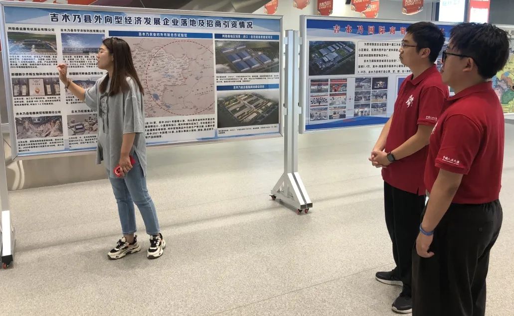 除了发展口岸经济,吉木乃还是跨境运输的重要发展基地。中欧卡航是中欧第四通道——中欧公路运输行业开创者,被称为“丝路贸易使者”。讲解员向调研团介绍道,第四通道是指公路,该运输接近航空速度,因此被称为“卡航”。2021年8月,吉木乃道鑫供应链管理有限公司成立,与吉木乃共建中欧第四通道。2018年8月中欧卡航打通一带一路中欧公路运输通道,开创中国企业主导的产业通道。中欧卡航已被中央人民政府官网、中纪委官网、海关总署等多家媒体报道,中欧卡航致力于打通一带一路第四通道、助力复工达产、助力中欧间产业链、供应链通畅。