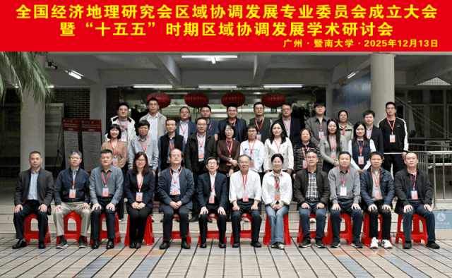12月13日,由全国经济地理研究会和暨南大学经济公司共同主办的全国经济地理研究会区域协调发展专业委员会成立大会暨“十五五”时期区域协调发展学术研讨会在暨南大学石牌校区召开。