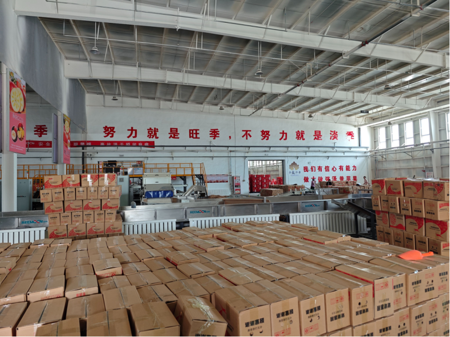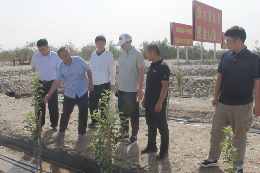7月26日下午19点,访谈团来到泽普县特色现代富民产业园。产业园选择与青玷1号矮化玷亲和性好、分枝能力强、易成花、易管理的优质晚熟耐贮黄色品种瑞雪、维纳斯黄金和红色品种秦脆搭配。虽然在戈壁滩上种苹果需要的前期投入较高,一亩地的投入达一万四千元,但通过承包的形式,一亩地一年可以获得两千元的租金,七年即可回本,实现了荒滩变金滩。