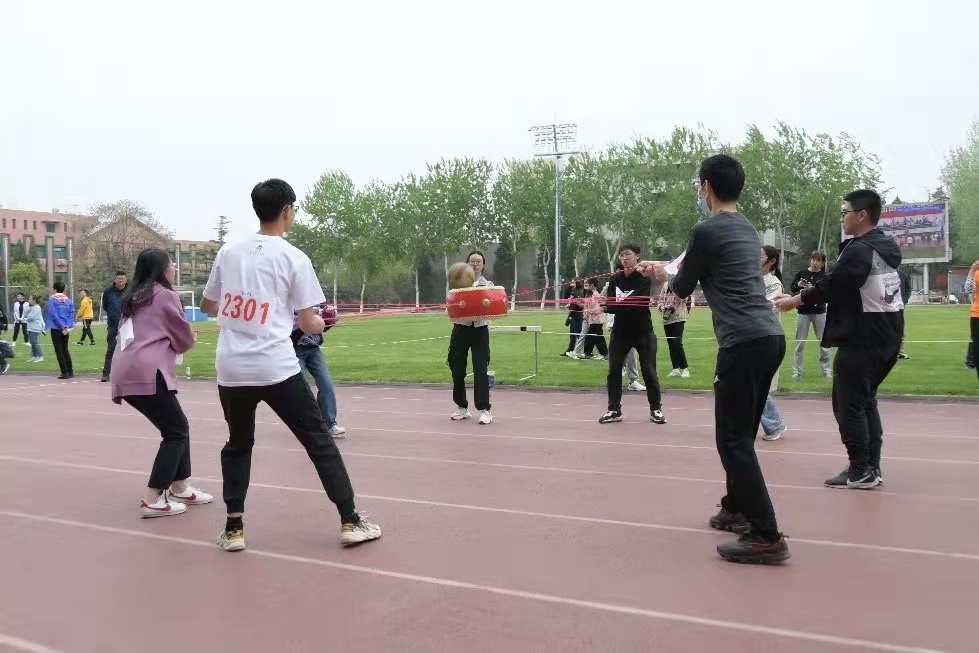 第四个项目是“同心鼓”,参赛队员有八人拉一鼓击球的比赛方式非常考验队员的默契程度。公司同学们行动敏捷,尽力相互配合,展现了应经学子合作共进的良好氛围!