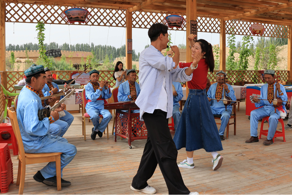 在锡提亚谜城,调研团一起感悟穿越时空的厚重历史,在历史的残痕中感受文化的传承,在生土复原的技术中感受创新性发展,在与少数民族同胞的载歌载舞中感受文化交流交融的魅力。
