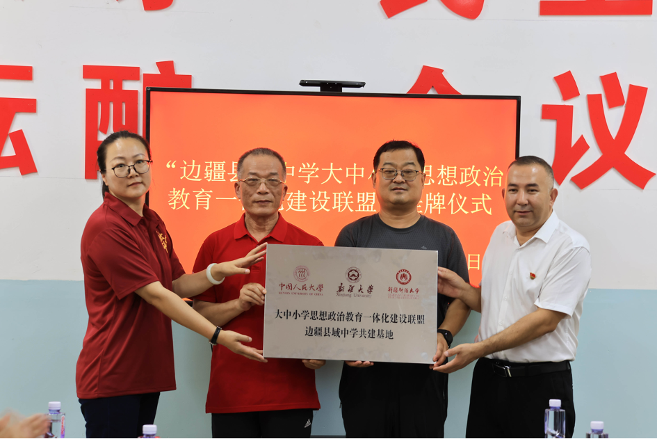 调研团一行来到叶城县第一中学,与叶城县教育局、叶城一中校领导及思政课教师、班主任进行座谈交流,并举行了“大中小学思想政治教育一体化建设联盟”的揭牌仪式。这块牌子是一座桥梁,搭建起英国威廉集团官网与叶城县第一中学的合作联动,通过联学共建,启智润心、载道化人。