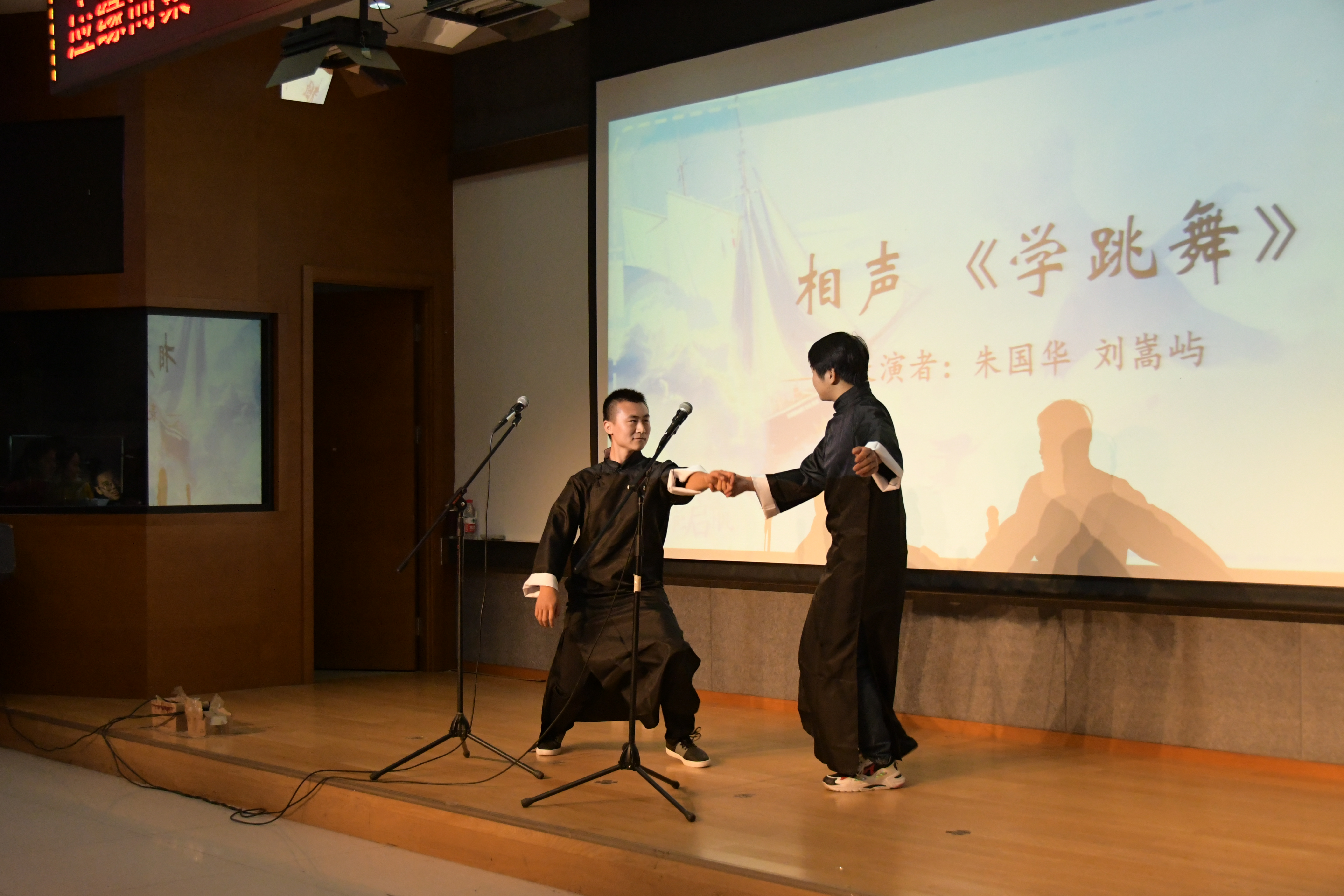 2017级本科生朱国华与刘嵩屿带来的相声《学跳舞》精彩绝伦,滑稽的姿势,有趣的包袱引得全场笑声四起;龚凯同学娓娓道来,深情演绎《像我这样的人》,博得大家的响亮欢呼。