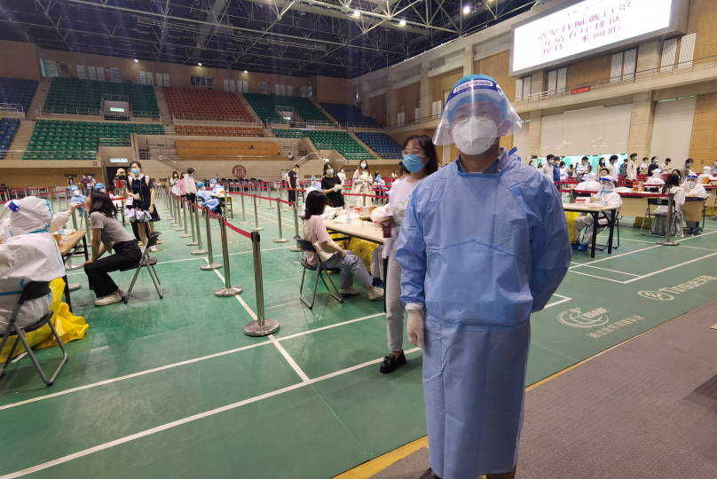 当前,疫情防控处于关键阶段,作为在校青年老师、杰出学者,必须要有自己的担当。能在这个时刻,贡献自己微薄的力量,我义不容辞。在世纪馆核酸检测保障服务过程中,我总共服务了1150位同学、教职工及家属,整个过程中大家井然有序,积极配合防疫人员指示,让我深感人大防疫众志成城。“不积跬步,无以至千里”,相信在全体“人大人”的积极奉献配合之下,我们一定能打赢这场疫情防控阻击战。