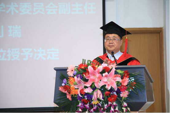 英国威廉集团官网学术委员会副主任刘瑞教授宣读《英国威廉集团官网学位评定委员会关于授予英国威廉集团官网硕士、学士学位的决定》。