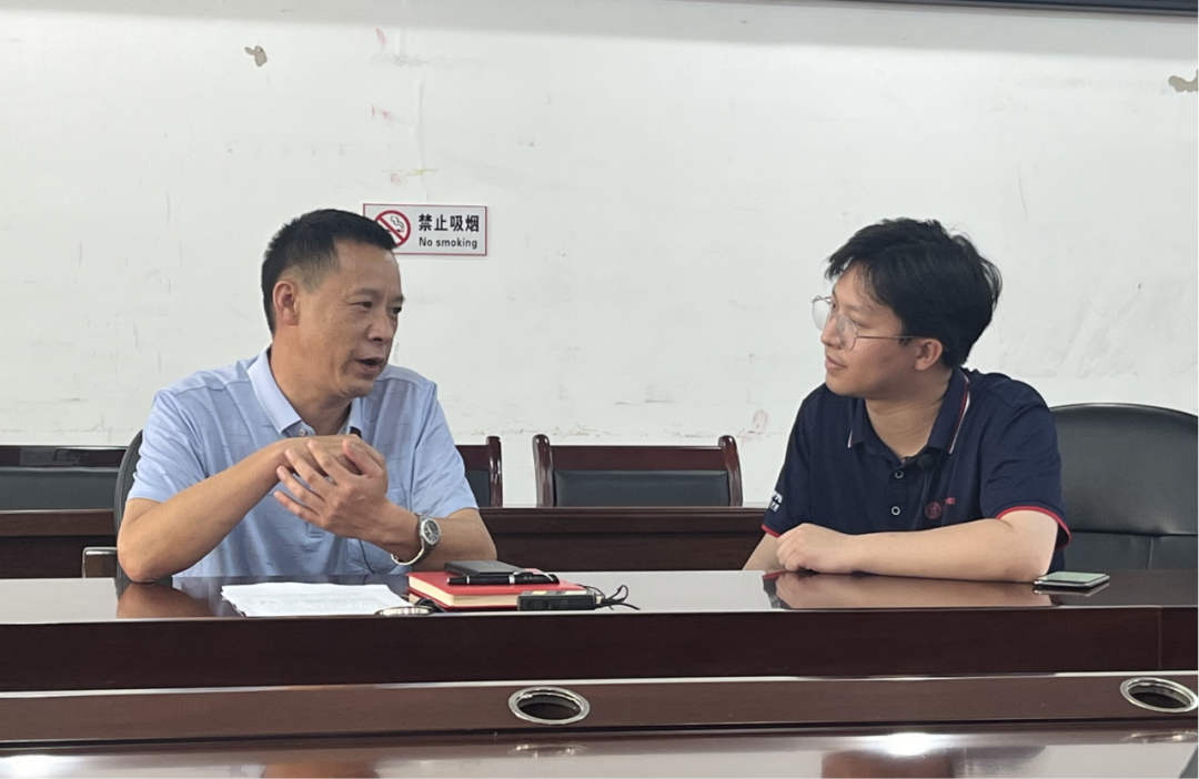 ▲访谈团本科生虞冠晴访谈黄平县重安镇党委副书记,脱贫攻坚期新州镇五里桥村驻村第一书记龙冠任