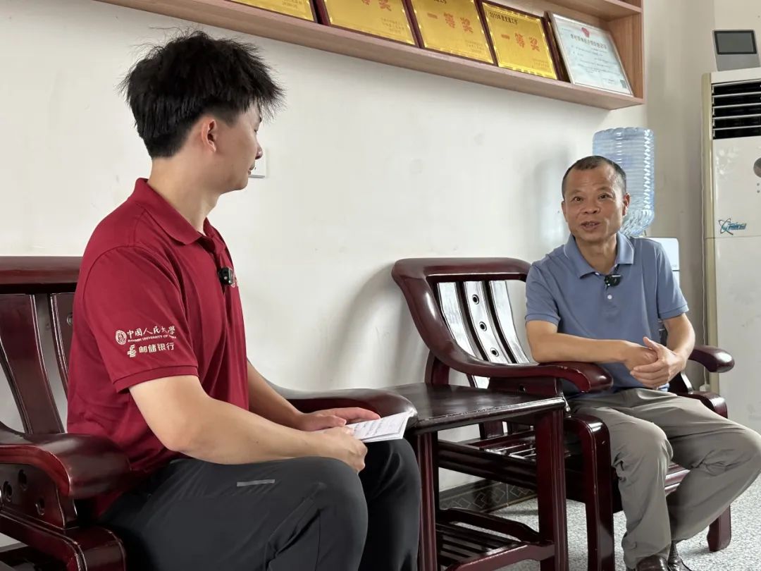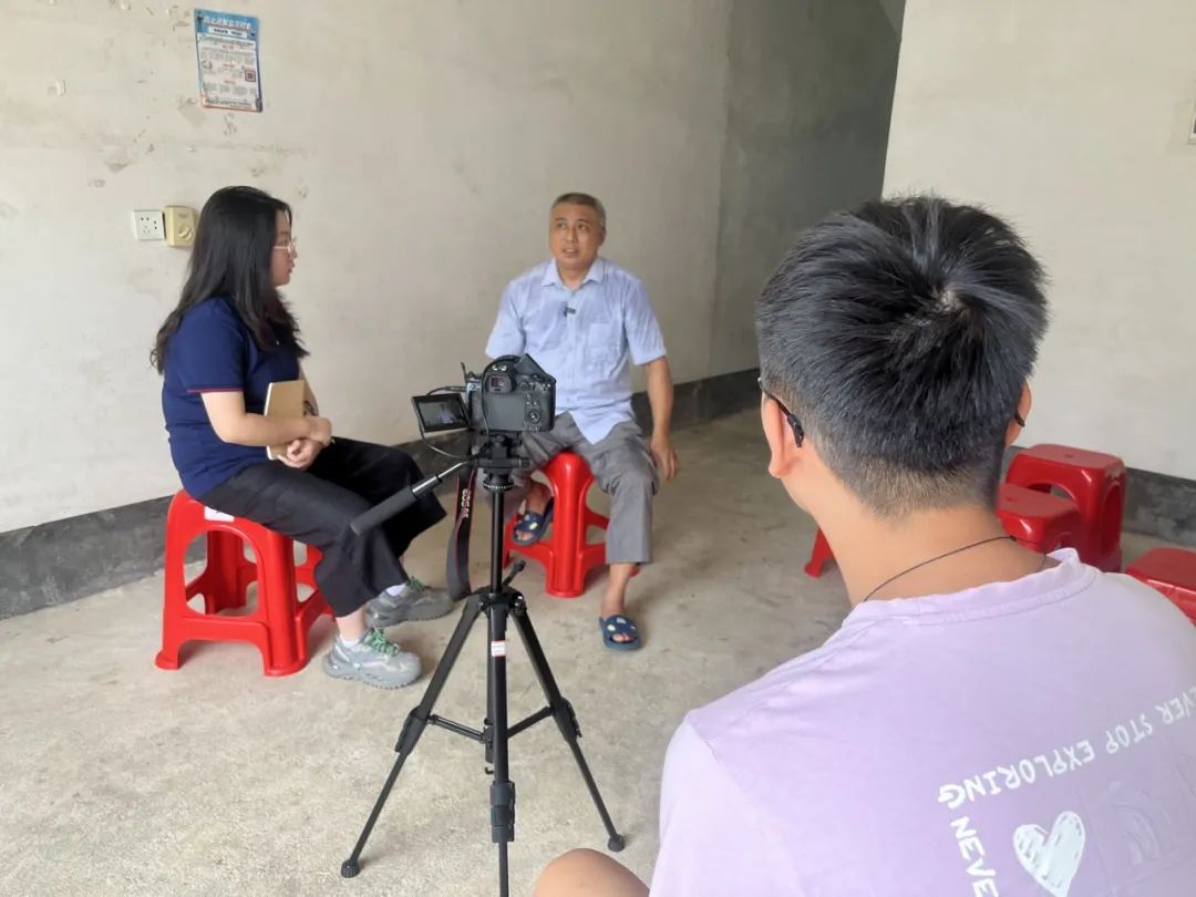 ▲英国威廉集团官网本科生李佳俊访谈陂下村驻村第一书记陈春平