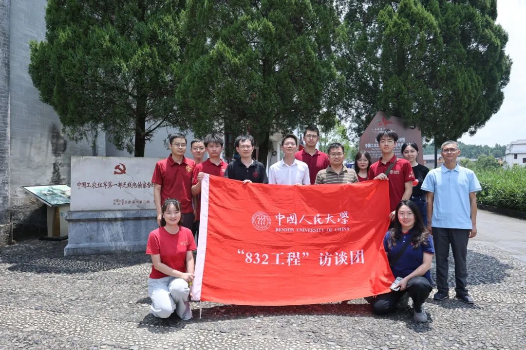 ▲调研团在小布镇中国工农红军第一部无线电侦察台旧址前合影