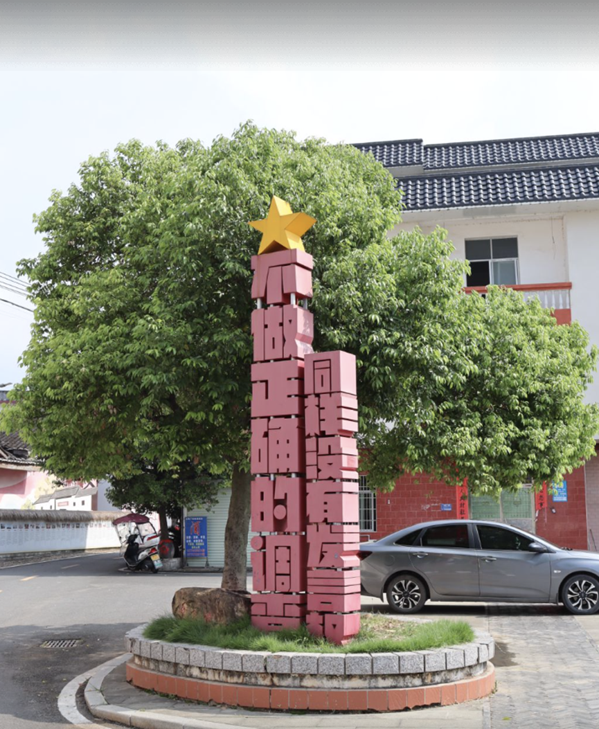 ▲钓洲岛乡村振兴示范区前的“宁都辣椒”形象