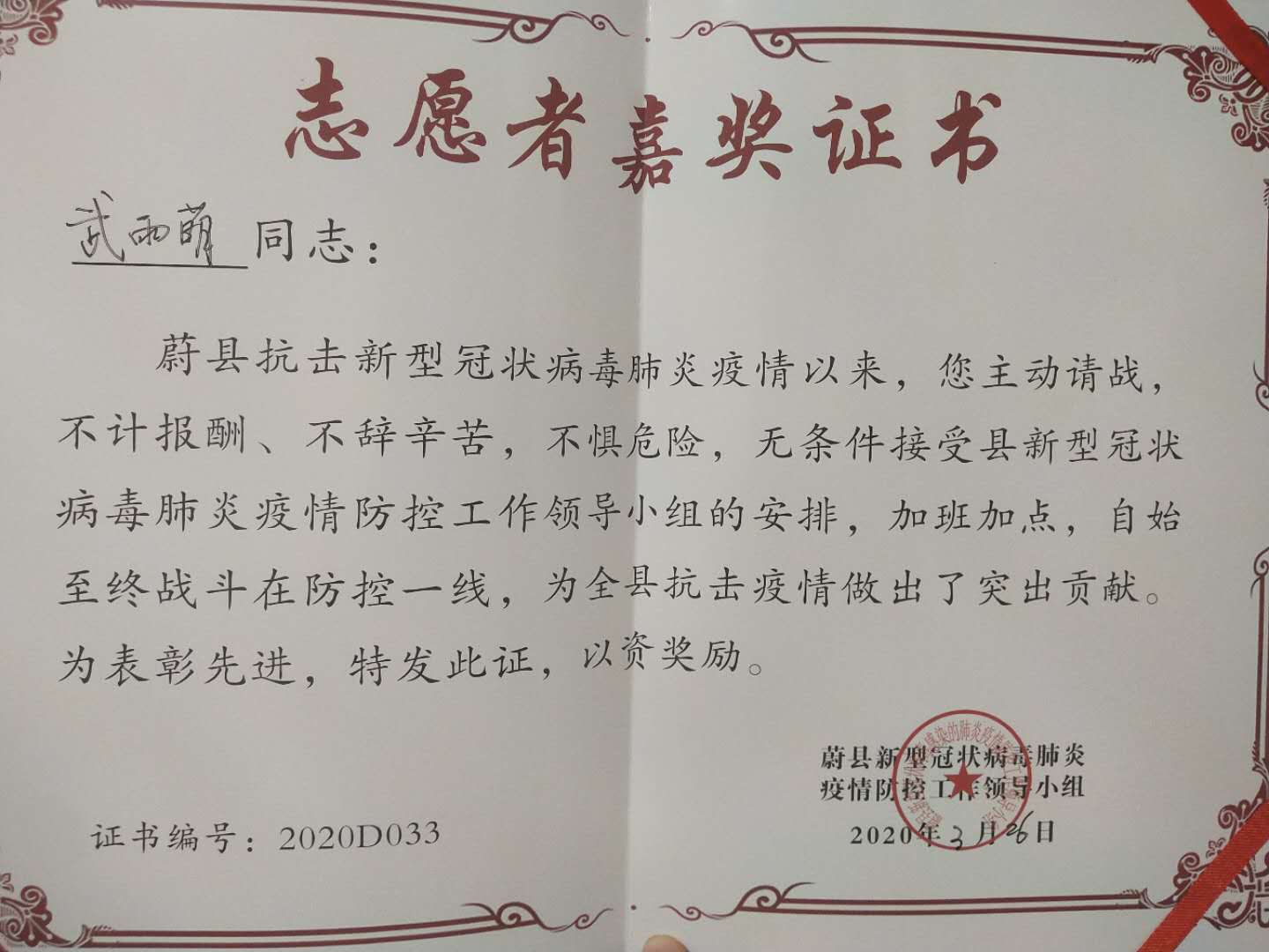 图:能经同学参加“蓝天救援队”开展救援防疫工作
