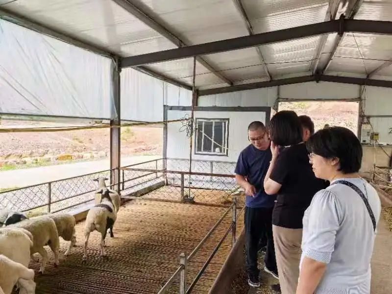 ▲访谈团考察湖羊养殖情况