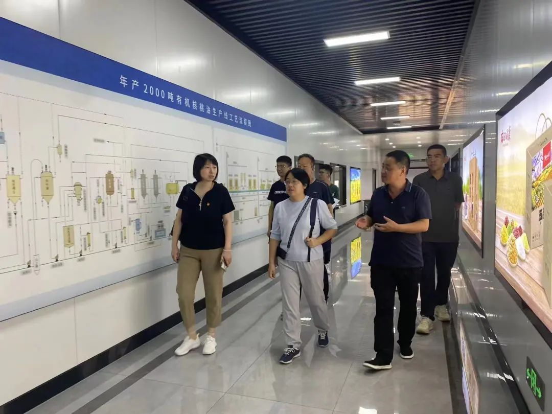 ▲访谈团参观核桃油生产车间
