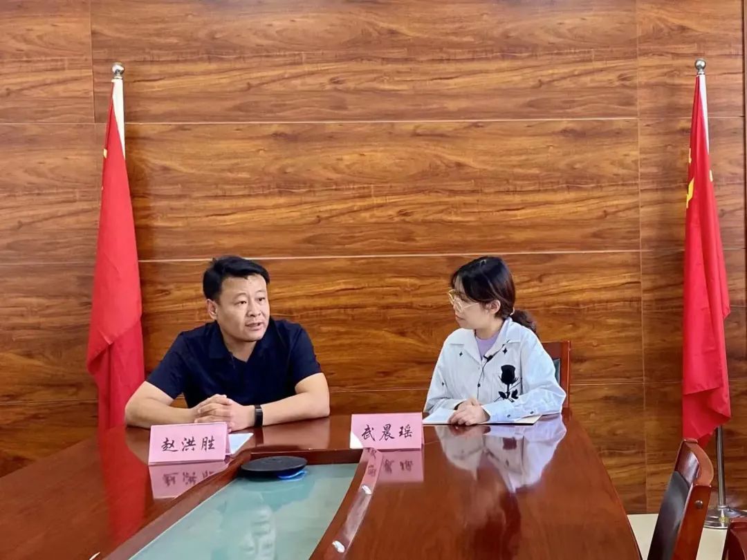 ▲硕士研究生武晨瑶访谈原芹泉村驻村第一书记赵洪胜