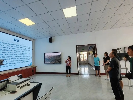 ▲工作人员向访谈团介绍麻田八路军总部