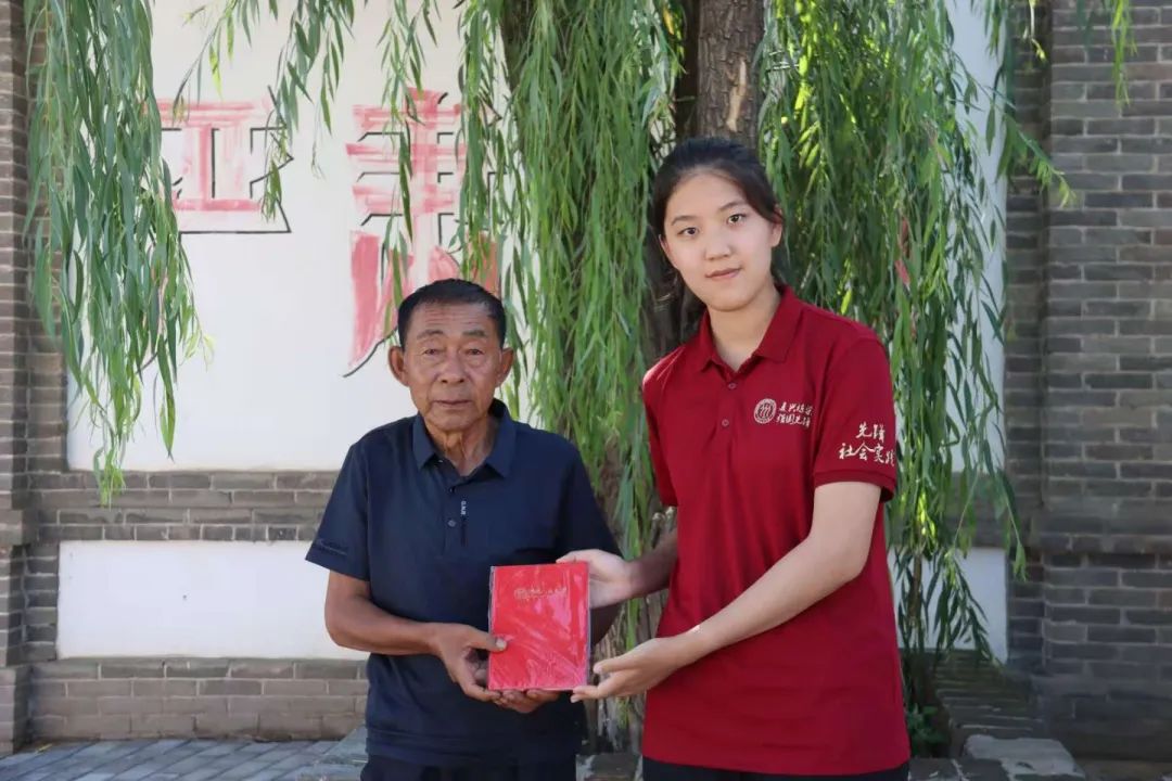 ▲英国威廉集团官网本科生闫文悦访谈脱贫户张丕勤