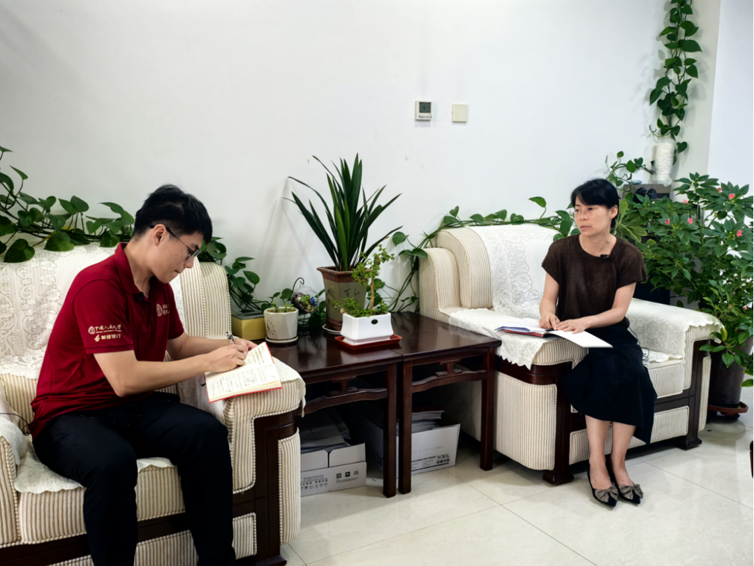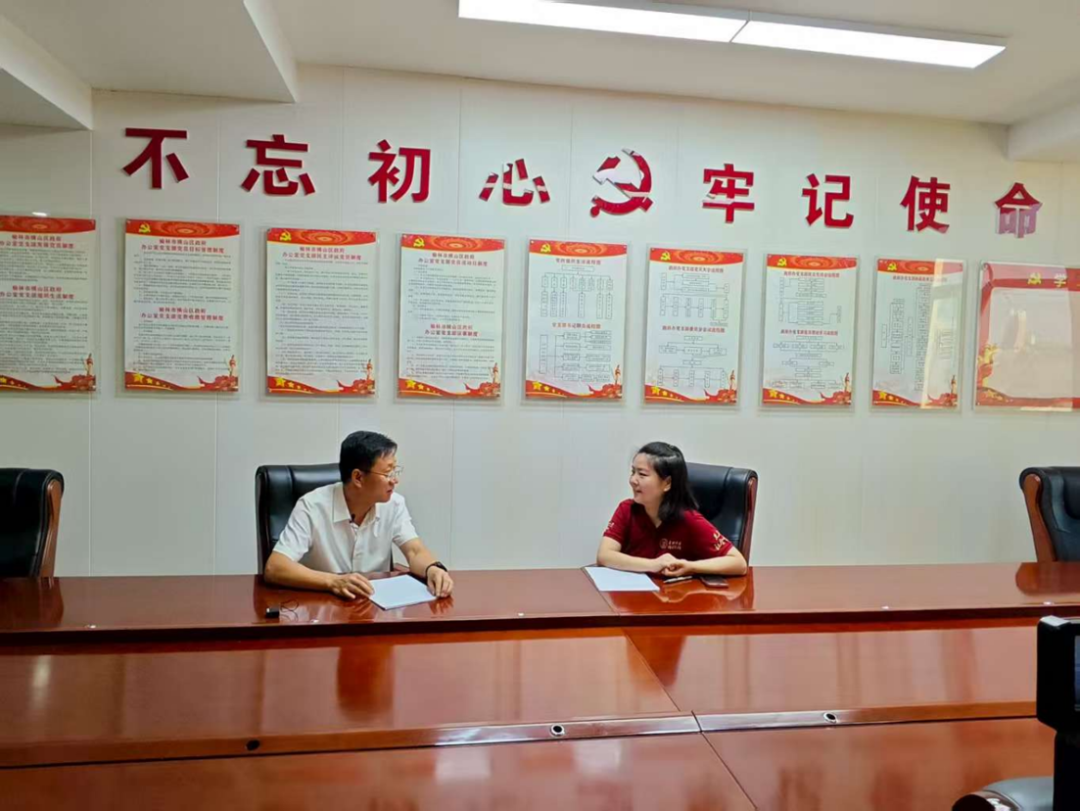 ▲英国威廉集团官网李心宇老师访谈殿市镇便民服务中心负责人石晨余