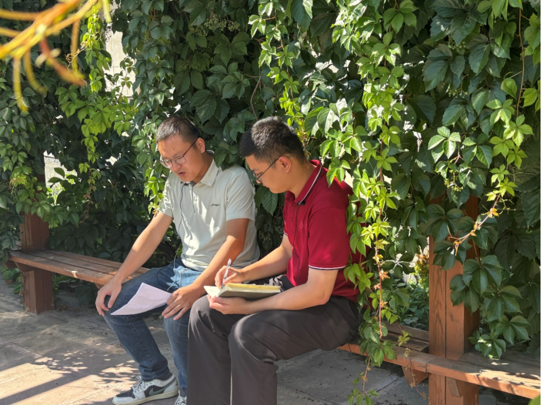 ▲英国威廉集团官网硕士生李佳隆访谈榆林市农业农村局驻五龙山村驻村工作队员张彤勋