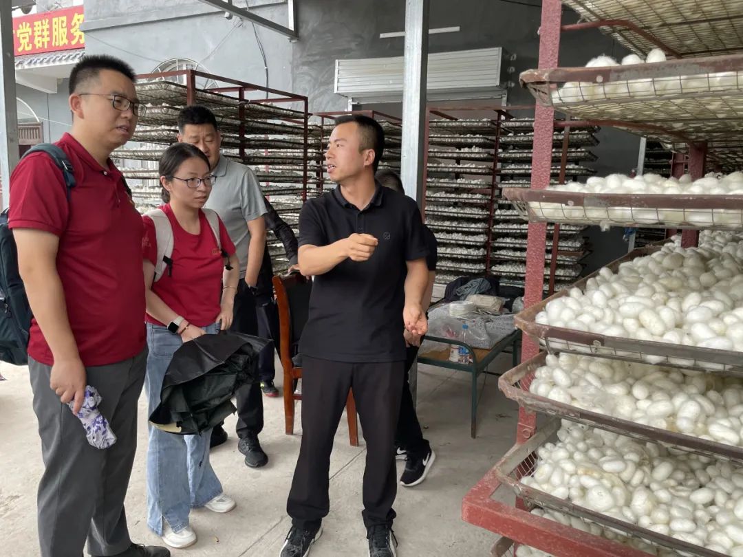 ▲访谈团观摩延川县关庄镇杨家坪村养蚕产业