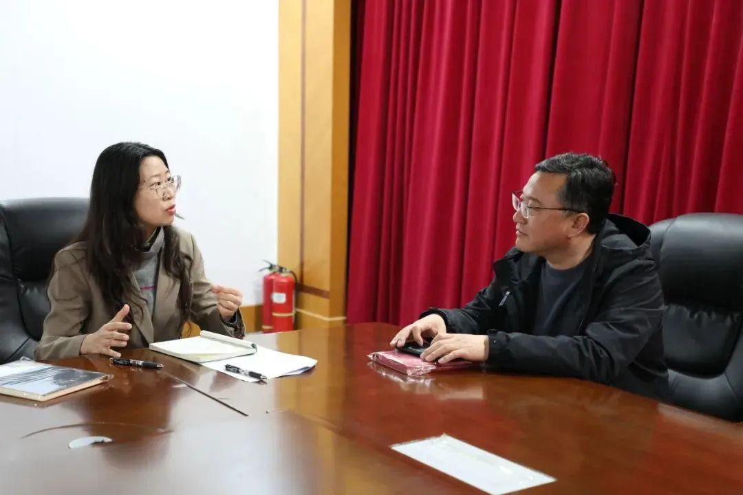 ▲河北大学新闻传播公司副经理商建辉教授访谈平山县农业农村局党组书记张建春