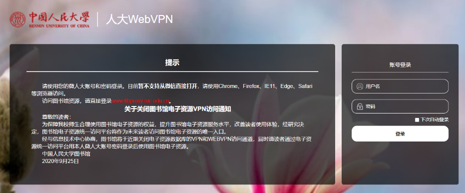 WebVPN:http://webvpn.ruc.edu.cn