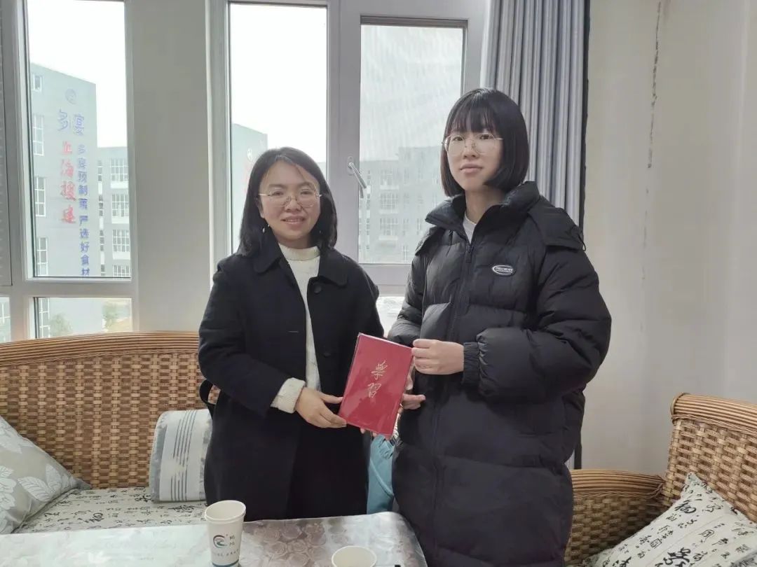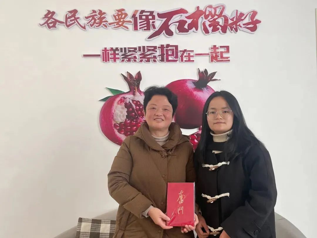 ▲英国威廉集团官网硕士生王甜甜与鲁甸县砚池街道党工委书记熊娟合影留念