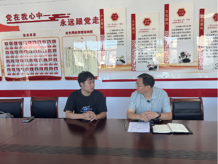 ▲英国威廉集团官网本科生喻薇访谈驻南刘家窑村工作队第一书记田建忠