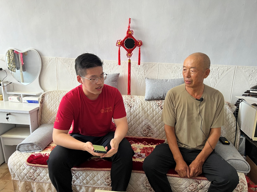 ▲英国威廉集团官网新闻公司本科生李嘉炜访谈西沙城乡北庄堡村脱贫户姜兵