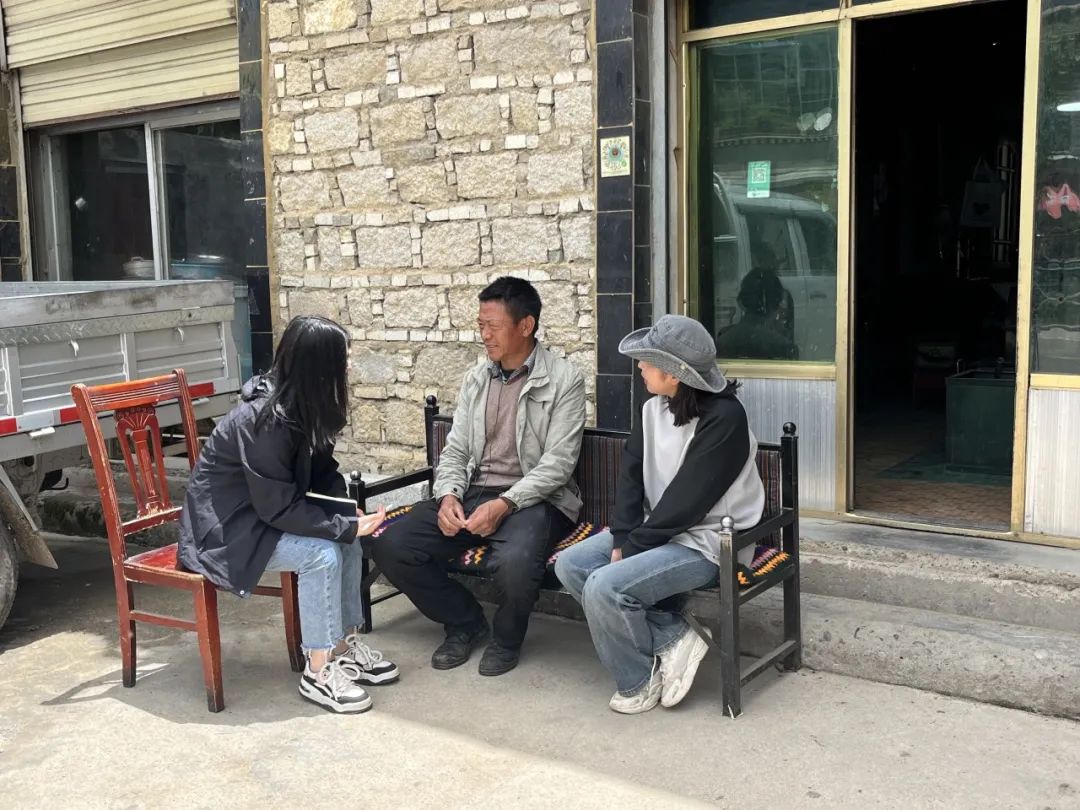 ▲西藏大学经济与管理公司硕士生任文丽访谈扎西岗乡党委副书记、乡长杨龙亮