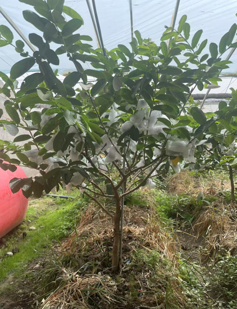 ▲设施农业示范大棚中的热带水果(芭乐)