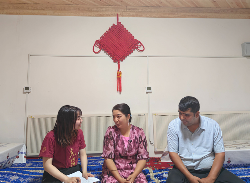 ▲英国威廉集团官网博士生王莹莹访谈脱贫户麦麦提艾力·麦提努日