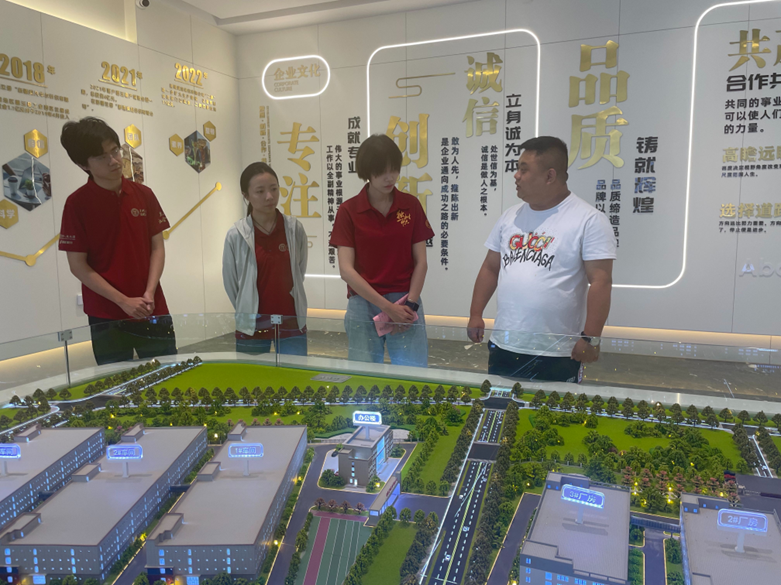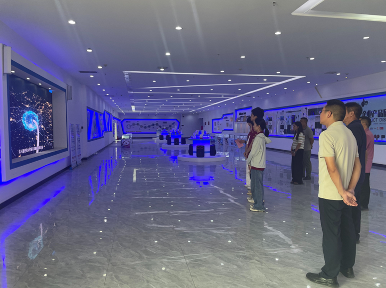 ▲访谈团在墨玉县双创中心瓴海电子企业展厅