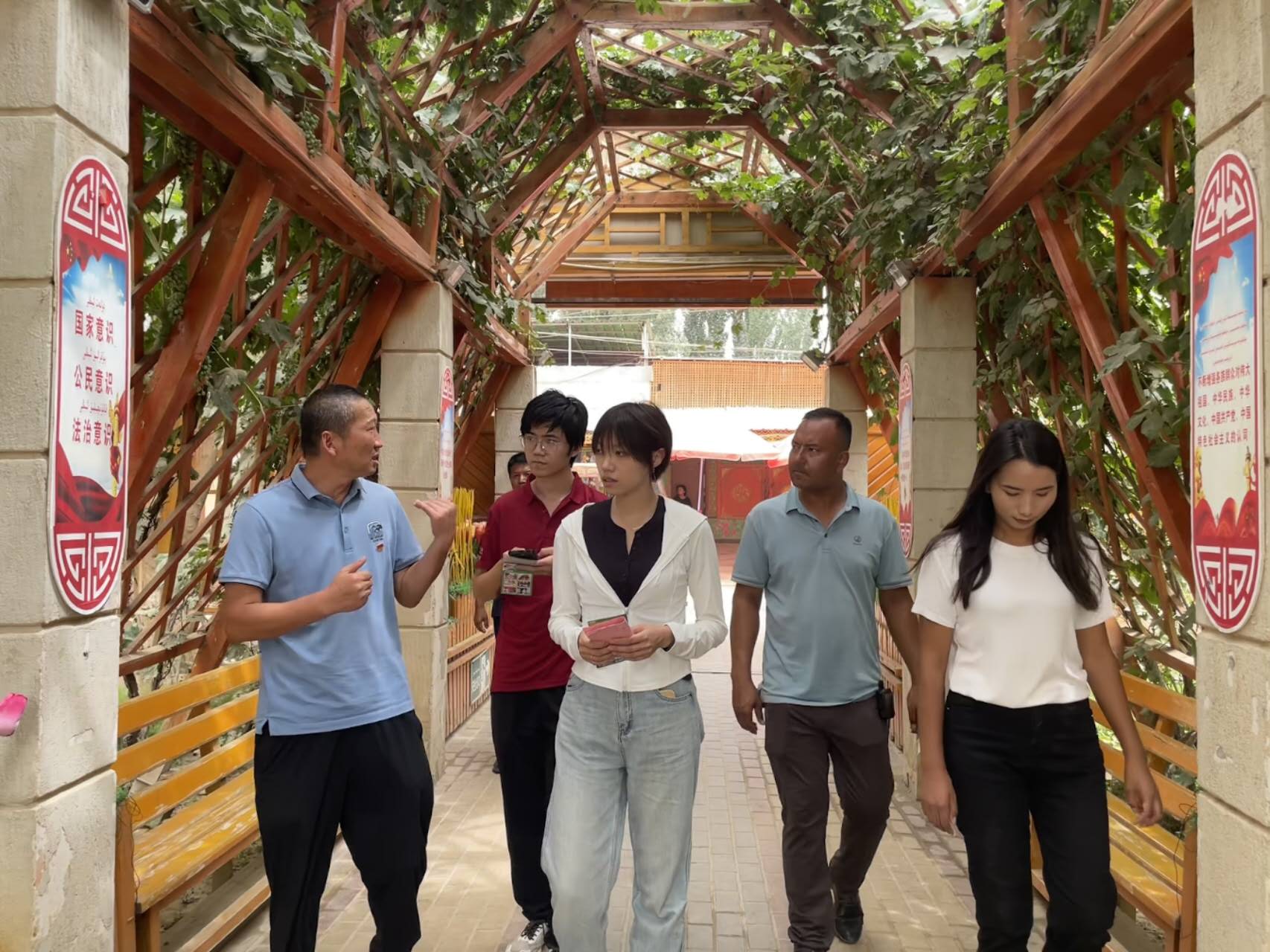 7月18日上午,访谈团到达墨玉县扎瓦镇巴夏克其村,调研其农民增收致富工作情况。巴夏克其村曾被认定为自治区级深度贫困村,于2019年正式脱贫摘帽,2025年入选全国第七届全国文明村镇拟命名名单,被誉为乡村振兴的“样板间”。