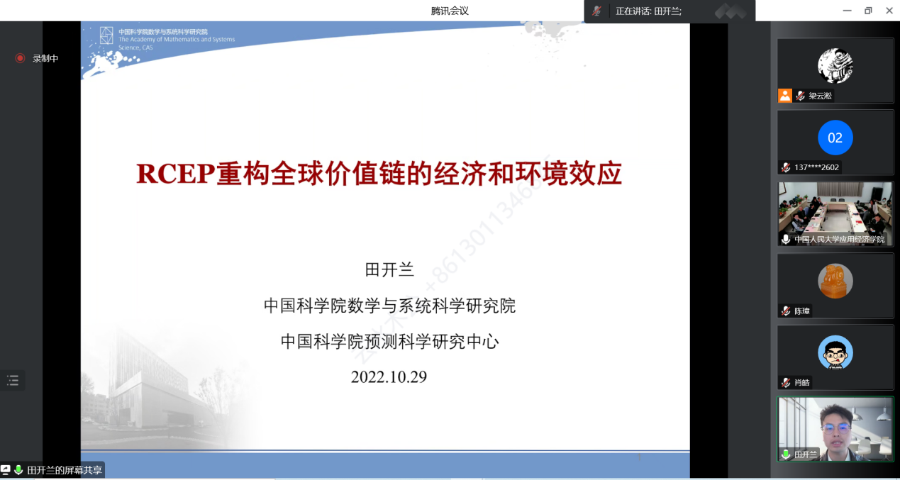田开兰以“RCEP重构全球价值链的经济和环境效应评估”为题展开报告。他介绍了量化贸易结构模型,并剖析了在RCEP贸易自由化的过程中,各国削减关税所产生的影响。