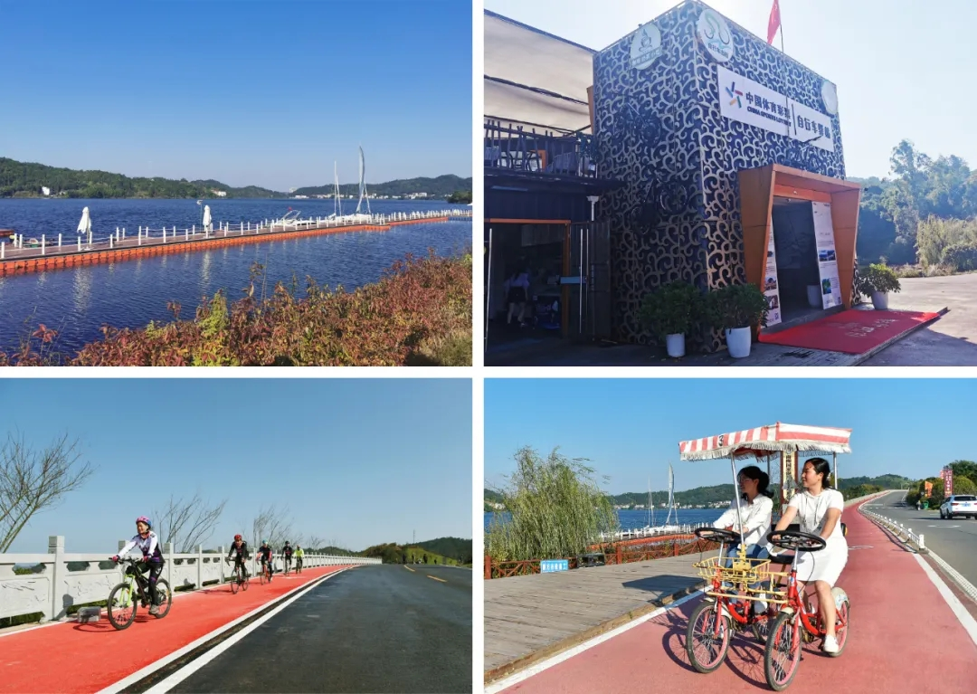 南湖旅游公路作为上犹 “十大最美农村公路” 之一,由原来 3 米宽的机耕道蜕变而来,如今已成为多功能生态旅游公路,宽敞的机动车道与彩色沥青铺就的自行车赛道环湖而建,近 17 公里的线路全程景观式打造,沿途布设了帆船基地、南湖国际垂钓中心、碧水湾风情小镇,串联起南河湖、五指峰等生态景点,是 “百万湾区游客入犹” 计划的重要通道。