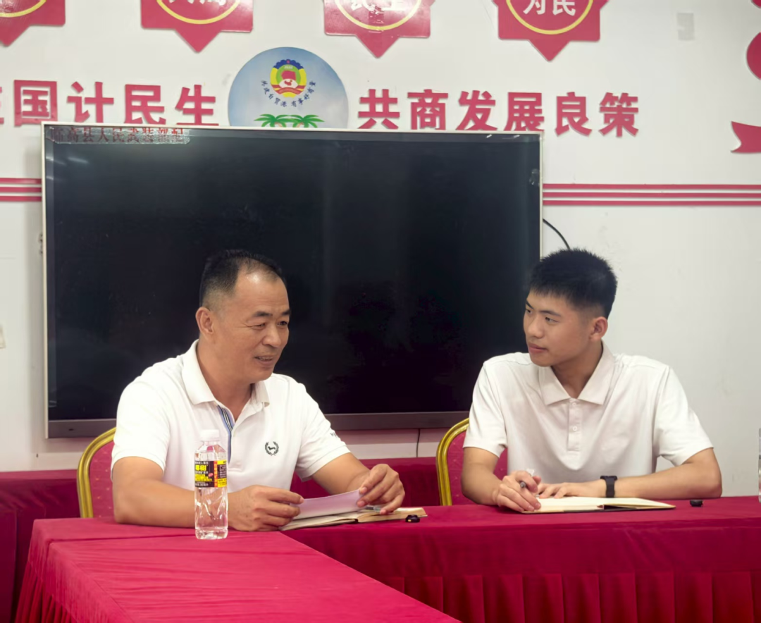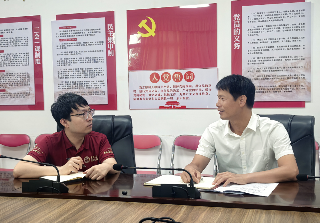 ▲英国威廉集团官网博士生陈芷琪访谈临高县波莲镇镇长陈天吉