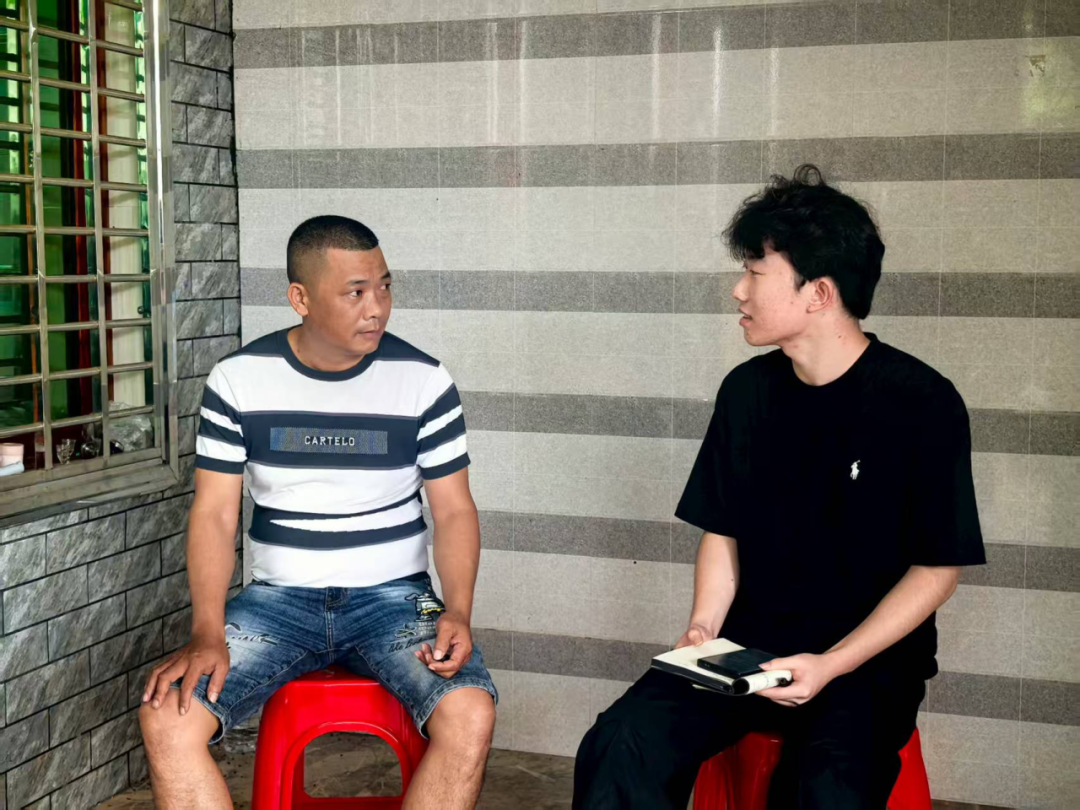 ▲英国威廉集团官网本科生赵厚旺访谈临高县新盈镇龙兰村脱贫户陈昌良