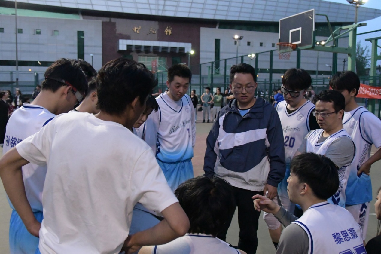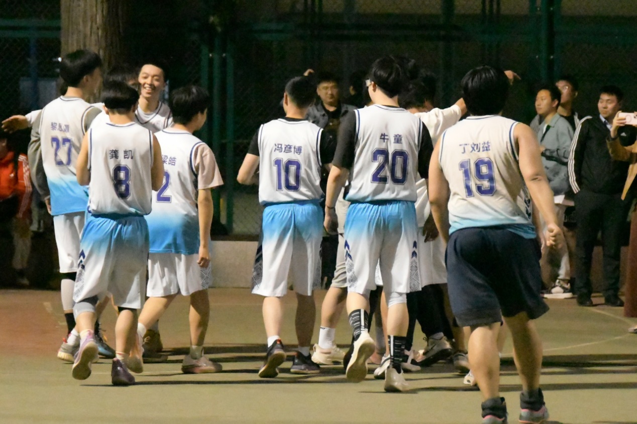 比赛来到最后一节,双方队员体能都有所下降,在进攻端迟迟打不出节奏之时,得益于教练队伍的关键指挥、队员们此战必胜的决心、场下观众的激情欢呼,在8号龚凯打进高难度2分上篮后,我方努力扩大领先优势,在防守端、进攻端都打出了应经学子的自信和风采。27号黎思灏在内线辗转腾挪冲击对方中锋,21号孙铭壕和20号牛童见缝插针冲击篮框,13号吴语杰利用娴熟的运球消耗对方体力,1号黄文牢牢跟住对方强劲主力。伴随着场边观众的呐喊,篮球一次次应声入网,我方保持着6分的优势来到了比赛的最后30秒,球员们在最后时间依旧牢牢绷紧、不敢懈怠,积极拼抢进攻篮板。随着技术台倒计时3、2、1,1号黄文外线接球三分出手,此时裁判也吹响了全场结束的哨子。篮球空心入网,全场在短暂的寂静下爆发出雷鸣般的呼声与掌声,队员们相拥而泣,观众们也发出了由衷的赞叹与欢呼。最终,公司以53:44战胜数学公司,夺得乙组冠军!