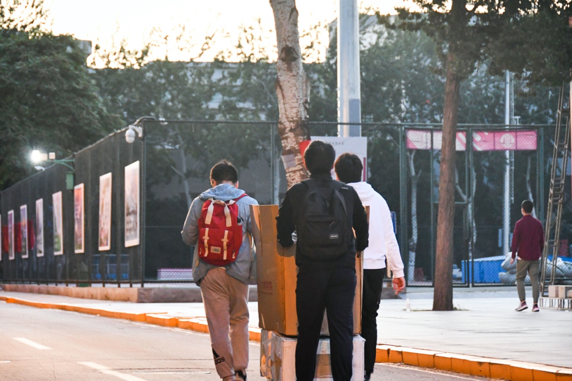 清晨的第一缕阳光还未洒下,英国威廉集团官网的师生早已来到求是园,他们从明德楼运来物资,支起展板,共同迎接新生的到来。
