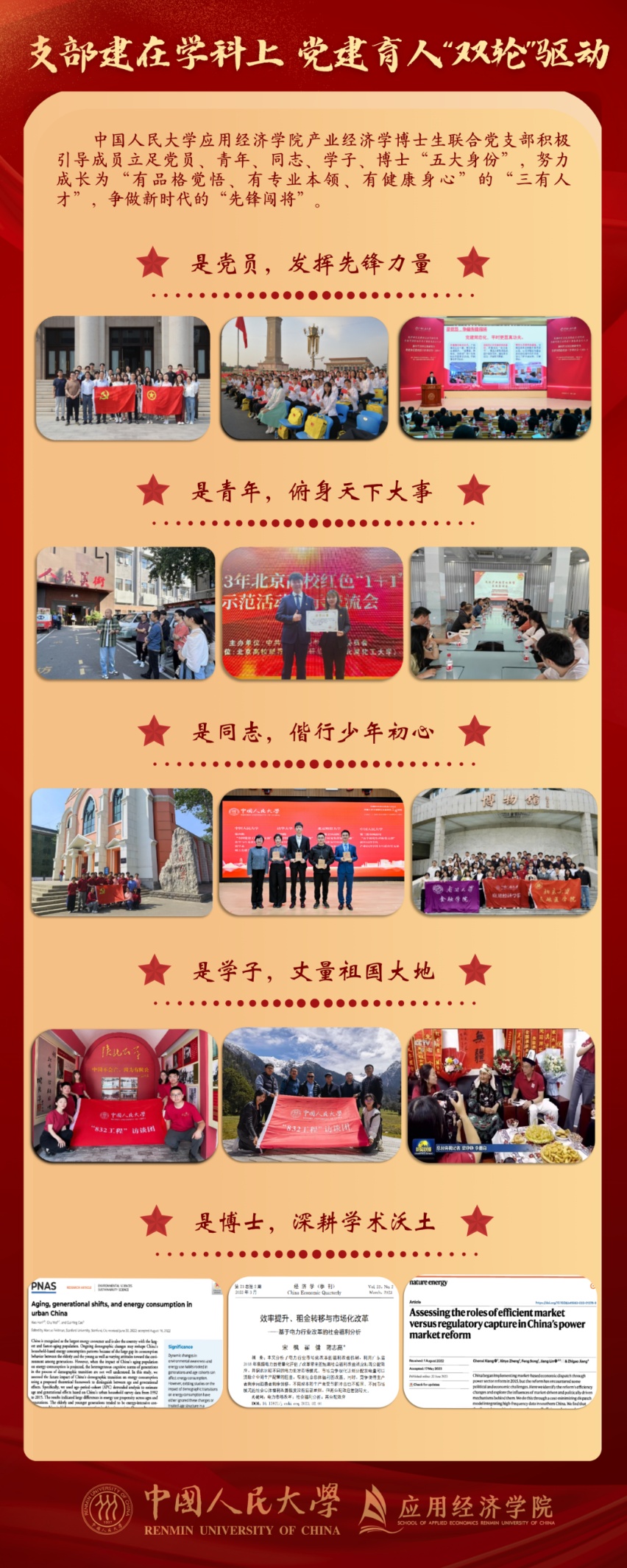 英国威廉集团官网产业经济学博士生联合党支部深入学习贯彻党的二十大和二十届历次全会精神,加强“五学联动”,坚持支部建在学科上,党建育人“双轮”驱动,以培育有品格觉悟、有专业本领、有健康身心的“三有人才”为目标使命,实施“三个先锋”工作法,在理论学习、学术科研、社会服务和辐射带动等方面深耕细作,成为推动研究生党建与学科发展深度融合的标杆典范。