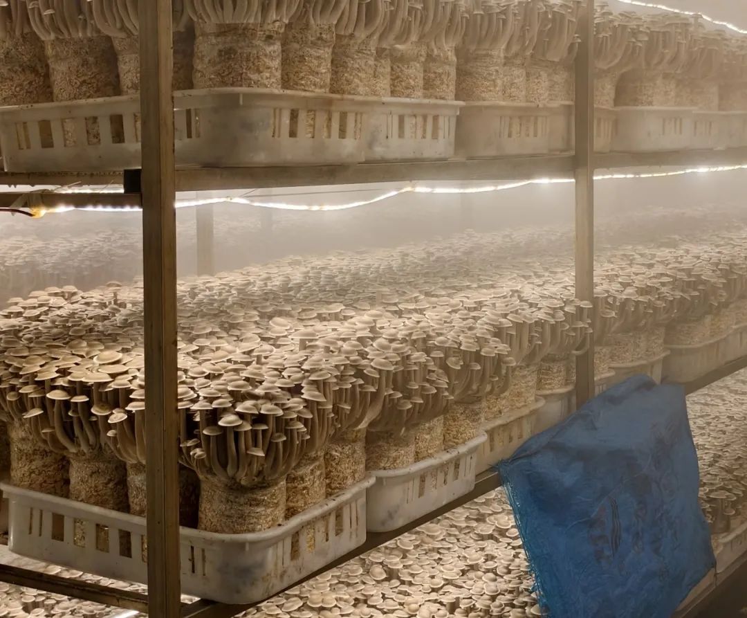 除中药材外,食用菌也为剑河县产业脱贫作出了巨大的贡献。自2022年以来,剑河县将食用菌产业发展进行再部署、再规划。通过招商引资,如意情集团入驻剑河,注册成立贵州顺诚生物科技有限公司,对食用菌产业园及部分食用菌基地开展技术改造以及管理经营。访谈团于8月28日下午抵达贵州顺诚生物科技有限公司,参观鹿茸菇生产线,并就标准化培养优质菌种与菌棒的回收再利用情况进行调研学习。