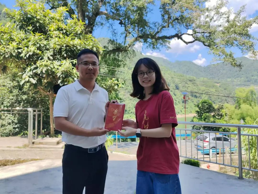▲本科生杜奕彤访谈柳川镇镇江村第一书记彭波