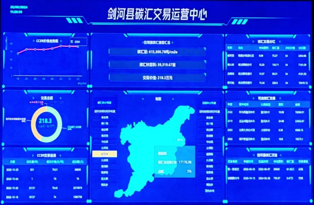 据林业局局长蒋泽勇介绍,剑河县的碳汇交易定价由CCER体系中碳排放权的动态价格决定。CCER机制(中国温室气体自愿减排交易体系)于2012年开启,2015年进入交易阶段,2017年3月有关部门暂停了项目备案。到今年再度重启,已间隔了7年之久。除了企业购买碳排放权外,司法碳汇交易也发挥着重要作用。司法碳汇即在发现存在乱砍滥伐行为后,根据损失的林木面积来判定需要向剑河县林业认购的金额。这些交易收入将会以分红的方式流向种植林木的人,实现剑河县林农的增收,也使他们更有保护林木、种植林木的动力。