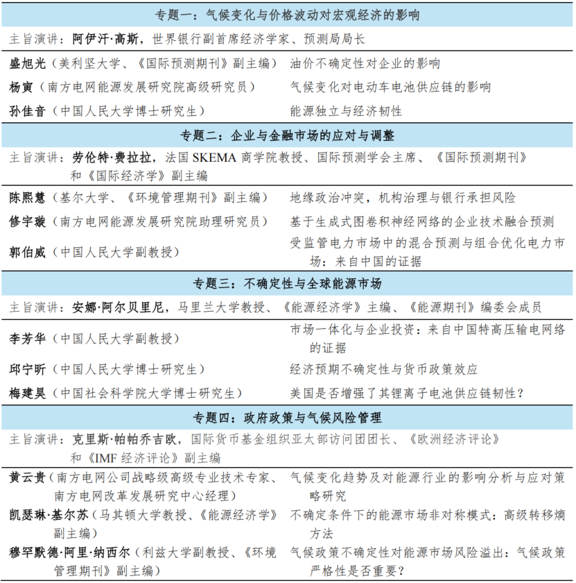 本次论坛先后举行主题为“气候变化与价格波动对宏观经济的影响”“企业与金融市场的应对与调整”“不确定性与全球能源市场”“政府政策与气候风险管理”的四场专题论坛。各界专家共同探讨全球变局形势对经济决策的影响,寻求能够有效防范风险、提升经济韧性的政策路径,以深化对相关重大议题的理解与应对。