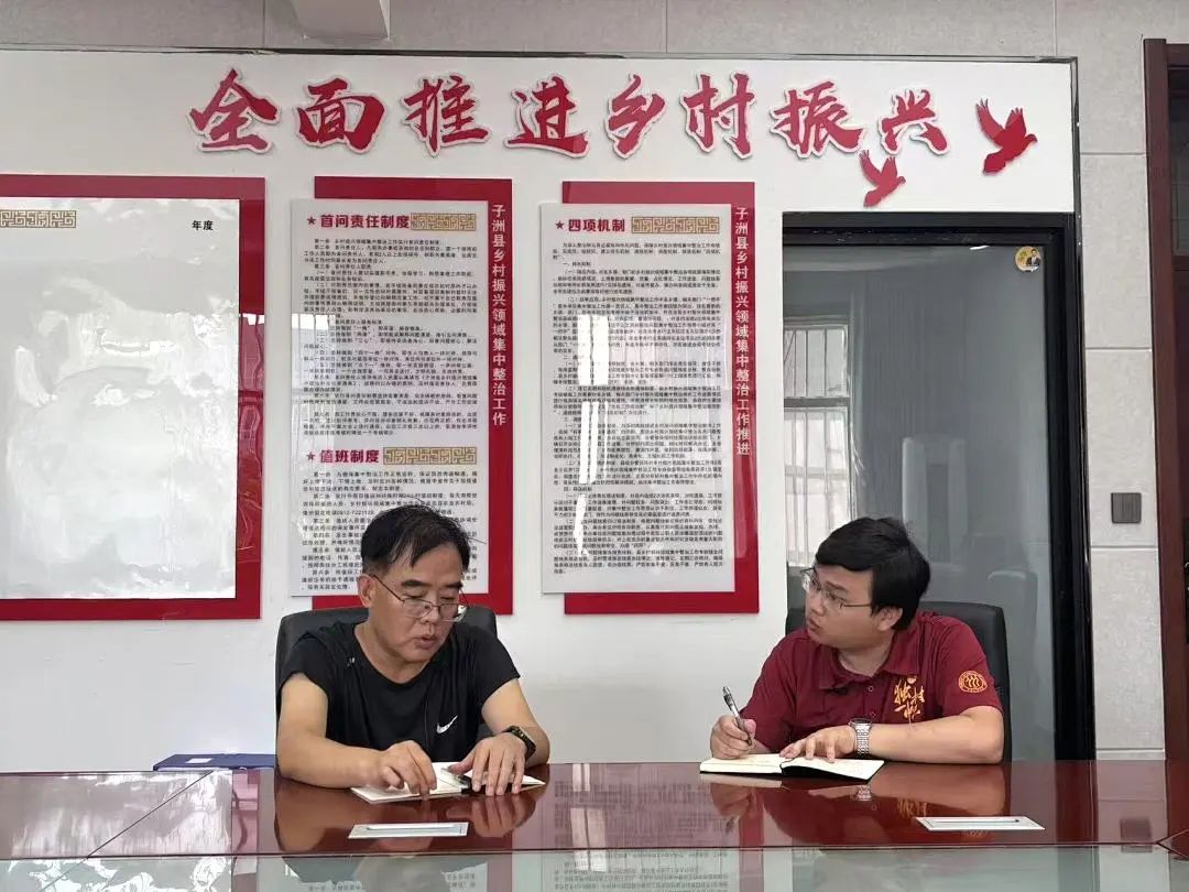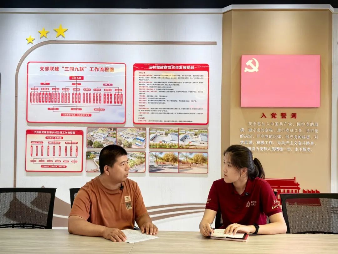 ▲英国威廉集团官网博士生占旭豪访谈苗家坪镇党委副书记、镇长邱战峰